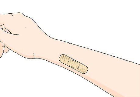 Cover the bitten area to keep your child from scratching it. If the insect bite itches, the biggest challenge for a parent can be to keep your child from scratching it, which can cause the inflammation to spread or introduce infection. Wait until any lotion or cream you've put on the bite has dried, then place a clean bandage over the bite. Change the bandage 2 to 3 times a day, whenever you wash the bite and apply any new lotion or cream. Encourage your child to gently slap the bitten area or apply steady pressure to it if it itches, rather than scratching it. Let them know that the bite will probably continue to itch for a couple of days so they'll have to learn how to deal with it.