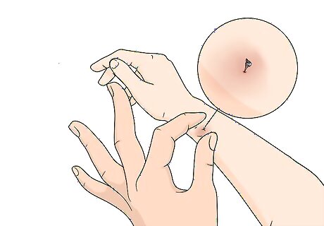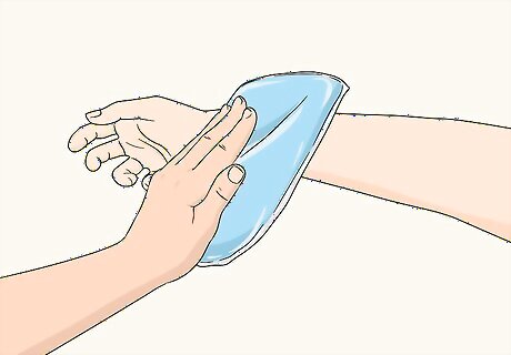 Scrape the stinger off if your child has been stung by a bee. If your child was stung by a bee, you may still be able to see the stinger sticking out of the center of the mark on your child's skin. Use a scraping motion to gently remove the stinger from your child's skin. Wash your hands or use gloves to cover your fingernails before scraping the stinger off to avoid introducing bacteria to the area. Encourage your child to be very still while you're doing this. If you squeeze the tip of the stinger or embed part of it further into their skin, this could result in more of the bee's venom being released into your child's bloodstream.