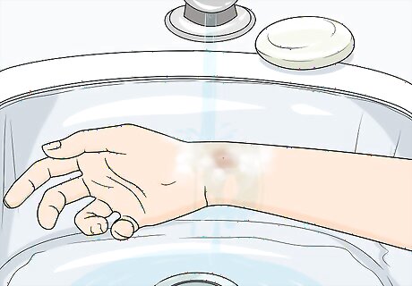 Wash the bitten area with mild soap and warm water. Before you can treat the bite, make sure the area around the bite is clean. This will allow you to better assess the size and severity of the bite. Do this as soon as possible after your child gets the bite, then 2 or 3 times a day until the skin is healed. Avoid scented soaps or soaps with dyes or other chemicals, as they may further irritate your child's skin.