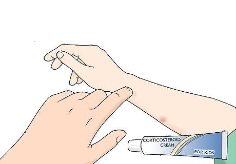 Use a corticosteroid cream to control inflammation and itching. An anti-itch cream with hydrocortisone, available over the counter without a prescription, can calm the bitten skin and promote healing. Squeeze out a pea-sized amount on your finger and dab it on and around the bitten area. Look for a cream that specifically says on the packaging that it is made for kids, or ask a doctor or pharmacist if it's okay to use on your child. Apply the cream as often as 2 or 3 times a day until the skin is healed, after you've washed the area with mild soap and warm water.Tip: Calamine lotion or aloe vera gel can also ease itching and can be applied more liberally than medicated creams.