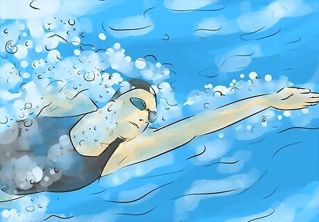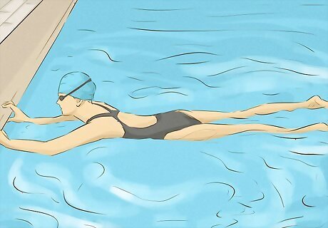 Go for a short swim. Try swimming laps for a short period of time (around 10-20 minutes) once every day or so. This shorter activity period will be easier on your body and will benefit you more than fewer, longer swimming sessions. Overworking your body with intense exercise is actually detrimental for those who have muscular dystrophy.