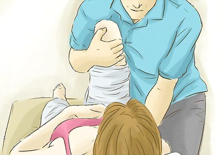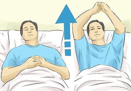 Do arm raises. A type of range-of-motion exercise for the shoulders involves raising your arms over your head. If you’re a righty, your stronger arm will likely be your right one. To begin this exercise, you should first grasp your non-dominant arm with your dominant arm at the wrist and hold it, then raise it above your head. Hold this pose for several seconds. Then repeat the exercise with the dominant hand grasping the non-dominant arm.