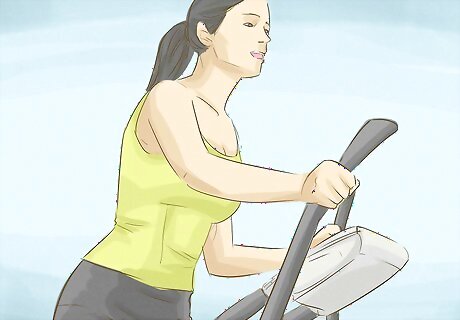 Try other exercises to diversify your workouts. Remember that you need to try to work out different muscles through varying exercises. Performing the same workout routine over and over will only concentrate on a specific group of muscles, while overlooking the rest. Focus on arms one day, then switch to legs the next. Do some low-impact aerobic exercises during one workout session, then change it up with some strength training during your next workout. Consider using an elliptical machine (on a low setting) or a stationary bicycle for a relatively low-impact workout.