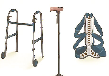 Use walking aids to help with mobility. For some with Paget’s disease of bone, help walking is a beneficial treatment. Walking aids can be prescribed to help you take the weight off the bones affected by the disease. This can help your mobility and help reduce your pain. You can try a walker or a cane to help you walk. Try inserts that go inside your shoe to give added support. Your doctor may suggest braces that help you keep your spine in the right position.