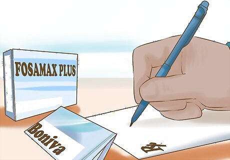 Take prescribed medication. A common treatment for Paget’s disease of bone is medication. Usually, patients are given medication used for osteoporosis. Many of these drugs are taken orally, but some are given through injection. Oral medication may cause digestive side effects. Some common medications used for Paget’s disease of bone are alendronate (Fosamax), ibandronate (Boniva), and risedronate (Actonel). For those who can’t take the bisphosphonates used for osteoporosis medication, you may be given calcitonin (Miacalcin).