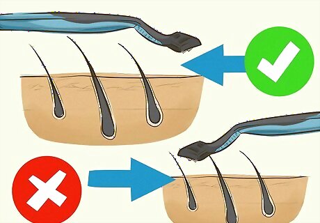 Shave with the grain. Against the grain may feel like it results in a closer shave, but shaving with the grain will keep the hairs aligned. When the hairs are aligned, they're less likely to curl up and become ingrown. Use a sharp razor so you can avoid tugging and pulling on the hair and skin. Be sure to use a shaving cream or gel to help the razor glide along smoothly and moisturize the skin.