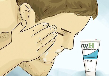 Try exfoliating. What you're really dealing with is a cluster of ingrown hairs. They may look like acne, but they're not. To lessen the problem, try exfoliating. That will rub off the top layer off skin, possibly freeing the hairs from their derma-prison. Make sure what you're dealing with is razor bumps. If they're pink or red (or dark if you can see the hair) and itchy, then they are razor bumps. They also may resemble whiteheads if pus has formed on top.