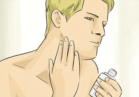 Use the right aftershave. Avoid putting chemicals like alcohol, or treatments that contain alcohol, on the shaved area. Your skin is super sensitive at this juncture, so it's best to use non-perfumed, no-alcohol substances. Read the label if you have any doubt. Go for one that's super moisturizing. Choose an alcohol, fragrance and oil-free moisturizing lotion to make sure the skin doesn't get irritated. According to the Department of Dermatology of the Langone Medical Center, products that contain salicylic or glycolic acid are the most effective in treating razor bumps. These ingredients clear the pores, moisturize and prevent infections.