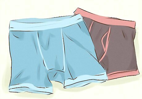 Wear loose underwear. You want to avoid as many possible irritants as possible when you've got a case of the bumps, and tight clothing is at the top of that list. Wearing tight undies doesn't let your skin breathe and as a result, the skin clogs, bacteria gets trapped, and the problems get worse. No thank you! Go for loose clothing if you can, too. The bumps around your thighs won't benefit from tight jeans or leggings. If anyone asks why you're wearing sweats, well, for starters it's none of their business. But you can tell them you're running a wikiHow experiment. Results inconclusive, but you'll keep them posted when you know.