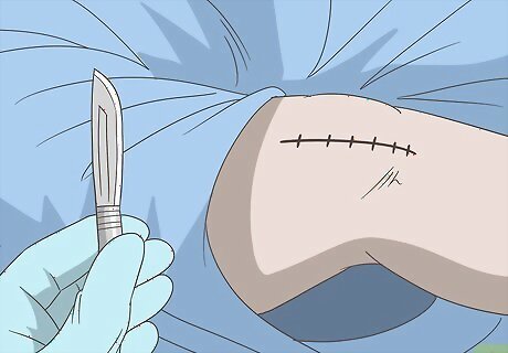 Ask about surgery to repair damaged joints. If your rheumatism has advanced to the point that your bones have already been damaged, surgery might be an option. Ideally, surgery will reduce your pain, improve the function of the joint, and restore your ability to use the joint. Common surgical procedures to treat rheumatism include: Synovectomy: Removes the inflamed lining of knees, elbows, wrists, fingers, or hips Tendon repair: Corrects loose or ruptured tendons around any joint Joint fusion: Stabilizes or realigns a joint if joint replacement isn't an option Total joint replacement: The damaged parts of your joint are replaced with metal or plastic prosthetic parts