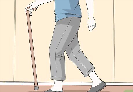Use a cane or shoe insert to help with pain while walking. If you have rheumatism in your knees, hips, or ankles, you might find it easier to walk with a cane, which distributes the pressure on your joints. A shoe insert might help balance your legs if one is slightly longer than the other due to inflammation around a joint. If your hands and wrists are also affected by rheumatism, you might have difficulty gripping or leaning on a cane. If you don't feel stable, you might want to try a wheelchair on days when your symptoms are bad.