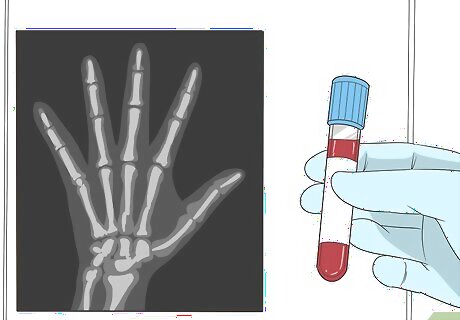 Get blood and imaging tests to identify rheumatism. After taking your medical and family history and evaluating your symptoms, your rheumatologist will likely order blood or imaging tests to confirm their preliminary diagnosis. The specific tests typically depend on what your rheumatologist initially thinks might be the issue. Blood tests check for inflammation and blood proteins that are associated with specific rheumatic diseases, such as rheumatoid arthritis. X-rays, ultrasounds, or MRI (magnetic resonance imaging) scans can identify bone damage caused by your rheumatism. If no bone damage appears, your rheumatic disease is likely in the early stages. There is a high risk of getting false-positive results from lab tests, so make sure you also have a physical examination and detailed medical history to help confirm your rheumatism.