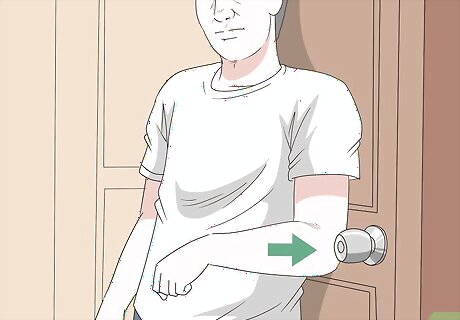 Favor large muscles and joints to complete tasks. Using larger muscles and joints takes the pressure off the smaller joints, particularly if your smaller joints, such as your fingers and wrists, are more affected by rheumatism. While you may have to get creative with your approach to some tasks, you might find this makes it easier for you to do more things. For example, instead of trying to open a heavy door by pushing it with your hand, you might lean into it and let your body weight push it open. Where using a larger joint isn't possible, distribute the weight and effort across multiple joints. For example, you might pick up and carry a heavy object with two hands instead of just one.