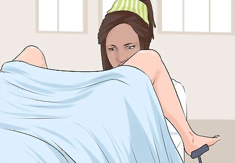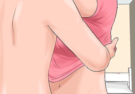 Try heat to diminish your pain. Heat may be just as effective as over-the-counter medications when it comes to easing painful periods. You can opt for a hot bath, or for hot packs placed over your abdomen. Do this as needed to alleviate the pain, while being careful not to burn yourself. If you are on-the-go or can't sit or lie down with a heating pad, try a heating patch that you can stick to your underwear or shirt.