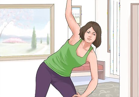 Do some light aerobic exercise. Aerobic exercise (such as biking, swimming, jogging, or brisk walking — anything that elevates your heart rate for 30 minutes or longer) has been shown to decrease period pain; however, be careful not to opt for strenuous exercise as working out too hard can actually worsen period pain.