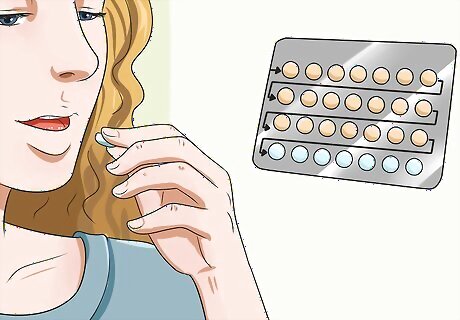 Take hormonal birth control pills. Hormonal birth control pills are often useful in the treatment of both primary and secondary dysmenorrhea. They function by replacing your body's natural production of hormones, including estrogen and progesterone (which are normally produced by the ovaries); instead, you receive these hormones in smaller quantities from the pill. Because you are no longer naturally producing hormones each month, your uterine lining does not grow to the same degree, and you produce less menstrual tissue each month. In secondary dysmenorrhea caused by endometriosis (uterine tissue that grows outside of the uterus), there will be less of this each month, and thus less pain. Taking hormonal birth control pills can also help to reduce worsening of adenomyosis — the condition where menstrual tissue grows into the muscle of the uterus.