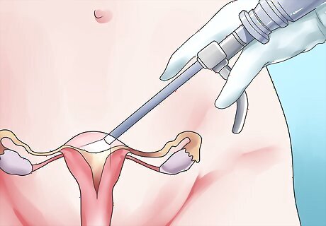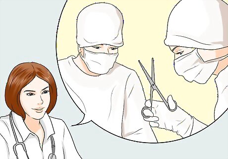 Have tissue from endometriosis removed surgically. The only way to definitively diagnose endometriosis is via exploratory laparoscopic surgery. Symptoms alone are not sufficient to make the diagnosis. While you are undergoing laparoscopic surgery, if endometriosis is indeed detected, the tissues can be removed during surgery. Removing the undesired menstrual tissues (that are residing outside of the uterus) can often provide significant short-term relief from the pain of endometriosis. However, the tissues are prone to growing back, so the pain may return in the long-term. Frequently a gonadotropin-releasing hormone agonists will be given to help remove any microscopic disease that couldn't be removed with surgery. You will then be placed on some type of hormonal birth control, which significantly decreases the rate at which symptoms return. Adhesions (scar tissue) can also be removed during laparoscopic surgery, which may also help with pain relief.