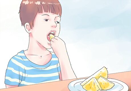 Consider having your child eat more pineapple. Pineapples naturally contain a mixture of enzymes (bromelain) that break down proteins, including proteins that promote inflammation. Combined with another similar enzyme (trypsin), it has been shown to significantly improve the effectiveness of antibiotics for the treatment of UTIs. There has not been much research done to prove that pineapples have the same effect in children but it can never hurt to give your child pineapple (unless he/she is allergic, in which case avoid giving your child pineapple).