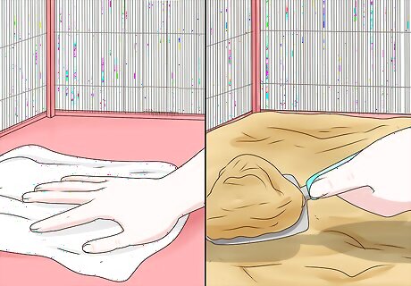 Practice good aviary sanitation. Clean your aviary on a regular basis in order to minimize any spread of disease on common playing or eating surfaces. If it is a wood floor, mop it with a bleach solution. If it is a sand floor, you should rake it regularly.