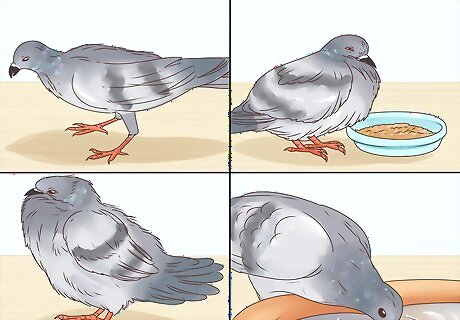 Recognize loss of appetite and other key symptoms. Your dove may also salivate excessively, experience diarrhea, or look depressed. Because of lesions in the mouth and throat, your dove may not be able to close its mouth, eat, or drink properly. Some of the other symptoms include: Weight loss. Loss of appetite. Ruffled feathers. Excessive thirst. Loose droppings. Yellow, raised lesions in the oral cavity. Watery eyes. Respiratory distress. Lump in the naval area. Excessive mucus in the oral cavity. Dehydration. Liver damage.