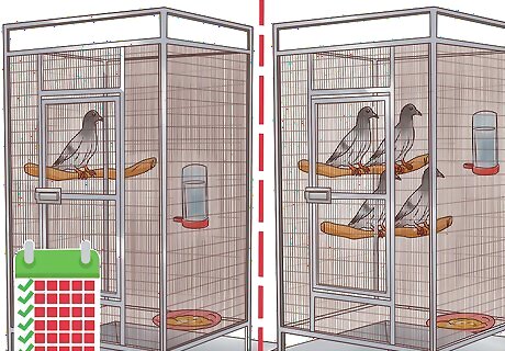 Quarantine new birds for thirty days. Because canker spreads so readily between doves and other birds, avoid contact between your flock and new birds. If you decide to add a new bird, you should put it in quarantine for thirty days. Put it in a separate cage with perches, water, and feeding bowls. During this time, watch it closely to make sure it doesn't have any symptoms of the disease. If it looks fine, you can add it to the aviary.