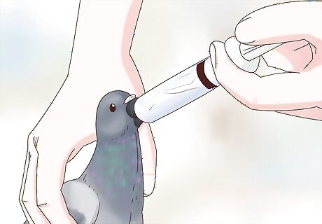 Tube feed it with a critical care formula for birds. Although your dove will likely experience a loss of appetite, it's important to keep it well fed. Use a tube or hand feeding formula, which you can find at your local pet food store. You could also try adding a tablespoon of peanut butter to a bowl of water. The solution of peanut butter may be more palatable for your dove. You can ask your veterinarian for critical care formula. You can also give your bird a rehydration solution. Mix a pint of warm water with a teaspoon of honey and half a teaspoon of salt. Serve it in the water bowl.