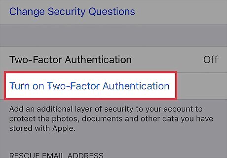 Select Turn On Two-Factor Authentication. If you don't see this option, your device isn't qualified for two-factor authentication per Apple's discretion.