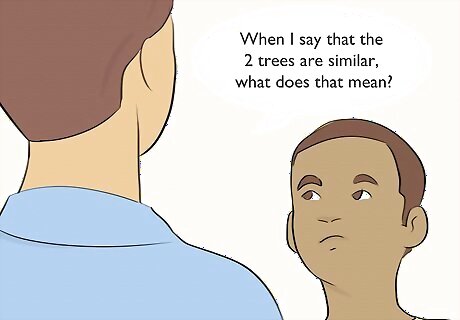 Ask your student questions to point them in the right direction. If your student is struggling, it can feel like you need to give them the answers right away. Instead, try to ask questions that make your student think about the concept so they can come up with an answer on their own. For example, if your student can’t remember the definition of the word “similar,” try asking, “When I say that the 2 trees are similar, what does that mean?”