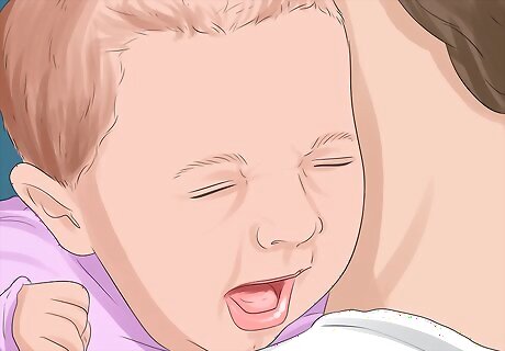Learn the "pain" cry. A baby who is in pain is likely to begin crying suddenly. The cry may be high-pitched and harsh. Each cry will be loud, brief, and piercing. This cry is designed to communicate urgency! If you hear the pain cry, respond immediately. Look for opened diaper pins or snagged fingers. If you see nothing, try soothing the baby. The pain may have passed, and the baby may need comforting. If your baby has an arched back and hard stomach, the pain cry may be due to gas. Soothe your baby, and hold her upright when nursing to limit stomach gas. If your baby's eye is red, swollen, or tearing, call your doctor. She may have a scratch or something in her eye such as an eyelash, which can cause pain. In the case of prolonged pain crying, the baby may be sick or injured. Call a doctor if your baby cries more when being held or rocked, especially if you detect a fever. If your baby under three months old has a fever (100.4 °F or 38 °C) call your doctor right away, even if she is not fussy.
