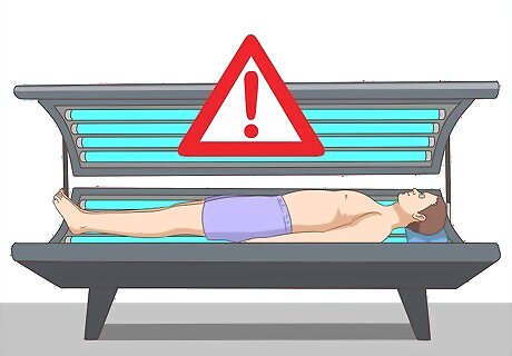 Avoid tanning beds to protect yourself from overexposure to the rays. Tanning beds work by radiating UVA. It may not seem harmful, since you don't get sunburns from it, but people who frequently use tanning beds are 2.5 times more likely to develop skin cancer than others.