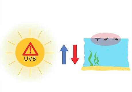 Discover the connection between UVB and carbon. UVB slows the productivity of phytoplankton, the microscopic marine algae that float in the ocean and feed on sunlight. Phytoplankton provide food for countless marine animals, such as whales, jellyfish, shrimp, and snails. They also store carbon. Phytoplankton are essential to maintaining our carbon cycle: too much UVB in the atmosphere would reduce their numbers, massively disrupting the world's carbon cycle.