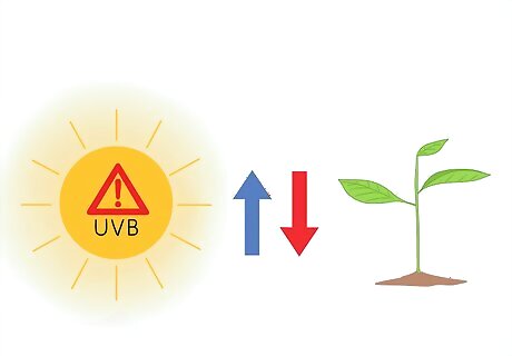 Get informed about UVB and farming. UVB rays inhibit photosynthesis in many plants. Increased UVB has decreased the size and quality of crops such as cotton, soybeans, wheat, and corn. Increased UVB also damages the immune systems of plants, making them more susceptible to diseases. In the future, this could mean the mass extinction of plant species on which we rely for nutrients, clothing, and fuel.