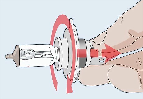 Rotate the bulb housing counterclockwise and pull it out of the headlight. The bulb housing will come out of the headlight in one piece after you release it by turning it to the left. Slide it out carefully to avoid hitting the bulb on anything and breaking it. Removing a broken bulb is far more dangerous than removing an intact one.