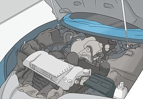 Pop the hood. Use the hood release located near your left leg when in the driver’s seat to release the hood, then open it to gain access to the engine bay. If you have trouble finding the release or opening the hood, refer to the owner’s manual or manufacturer’s website for help.