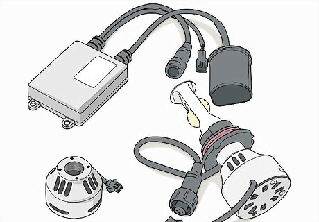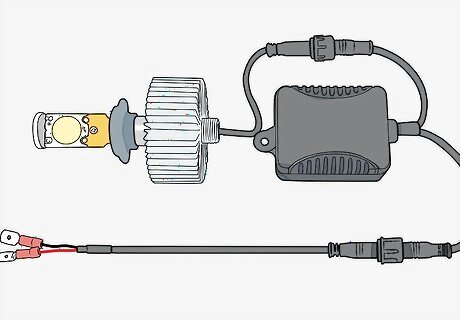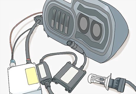 Purchase an application specific HID headlight conversion kit. While there are universal HID conversion kits on the market, they usually require a bit of custom fabrication to install. Instead, purchase a kit made specifically for your vehicle (including make, model, and year) at your local auto parts store. If you can’t find a kit at an auto parts store, you can find them online at auto parts retailers and even on websites like Amazon or eBay.