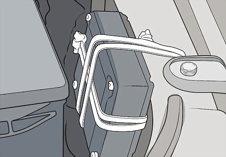 Open the hood of the vehicle. You can find the hood release near your left leg when you’re sitting in the driver’s seat of the vehicle. Pull it toward you to release it. At the front of the car, use your hands to release the safety lever holding the hood closed. Then lift the hood up to open it. If you have trouble finding the hood release or the safety lever in your specific vehicle, refer to the owner’s manual or manufacturer’s website for help.