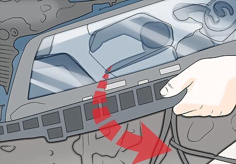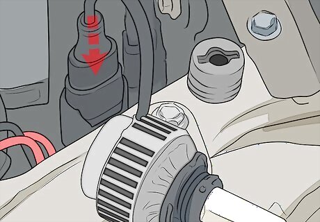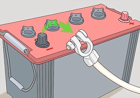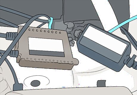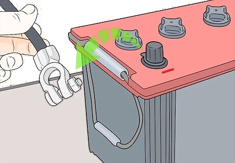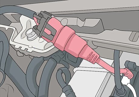 Open the vehicle’s hood. Locate the hood release for the vehicle inside the cabin near your left leg while sitting in the driver’s seat. Pull the release and exit the vehicle. At the front of the car, use your hands to release the safety lever holding the hood closed. Then lift the hood up to open it. If you have trouble finding the hood release or the safety lever in your specific vehicle, refer to the owner’s manual or manufacturer’s website for help.