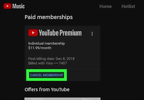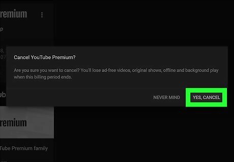 Click Yes, Cancel. It's in the lower-right corner of the confirmation message in the center of the website. This cancels your YouTube Music Premium account at the end of the current billing cycle. You can enjoy the benefits of YouTube Music until the end of your current billing cycle.