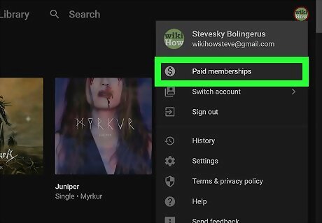 Click Paid memberships. It's the first option in the Account menu. It's next to an icon that resembles a dollar ($) sign. This option only appears if you already have a YouTube Music Premium account.