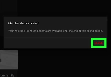 Click Close. When you cancel your Premium account, it displays a confirmation message in the center of the website. Click Close to close the message.