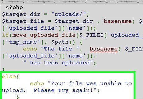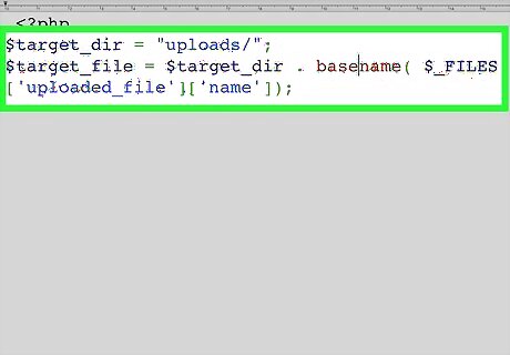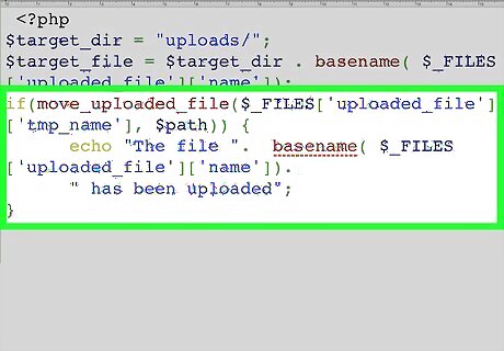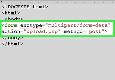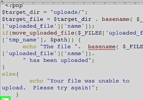 This wikiHow teaches you how to create a basic form to allow users to upload files to your website. You'll need to create two files. The actual upload form will be created using HTML. The PHP file will be a separate file that is referenced in the HTML code. The following scripts do not include any security restrictions. It will allow anybody to upload any file to your server.
