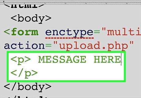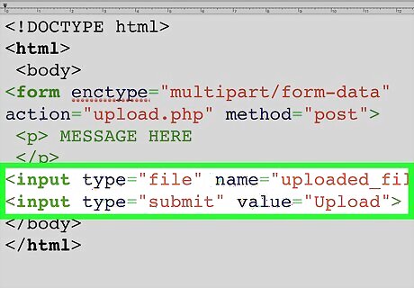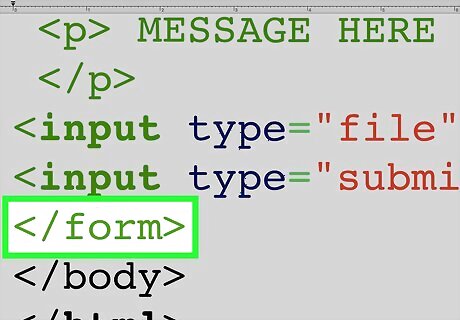 Save the document as an HTML document. Click "File", then click "Save As" and name the document something like Upload_Form.html. Be sure to add the .html extension at the end of the file name. This will save the file as an html document.
