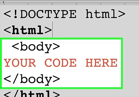 Create a body for your HTML page. The body is where all the displayable contents for your webpage are written. On a new line, type