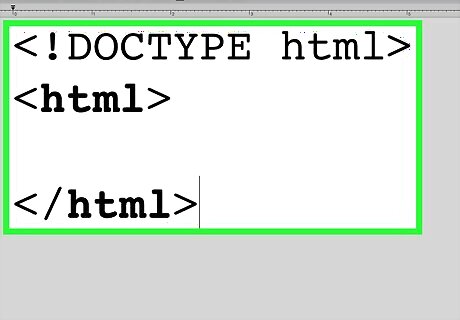 Type the following code. This code tells the web browser that the language we are using is HTML. Click here to learn how to create a basic HTML page.