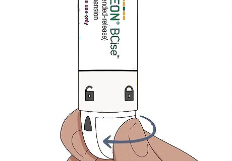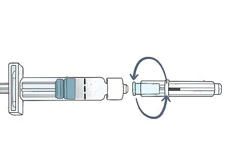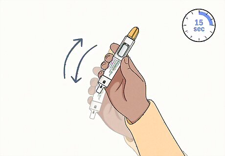 Shake the pen for 15 seconds to mix the medication. Hold the pen firmly by its center. Shake it vigorously up and down for at least 15 seconds to make sure the medication is mixed completely. When you're done, the medication should be evenly colored and cloudy. If it looks uneven, or there is any white liquid settled on the bottom or top, shake it some more until the medicine mixes.