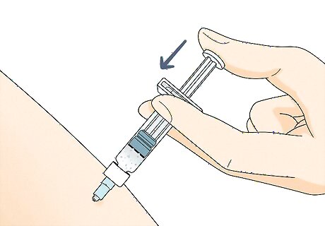 Pull the plunger back to fill the syringe. There is a black line on the syringe, which is the dose line. Pull the plunger down past that black line to fill it with a dose. The black line represents one dosage, as prescribed by your doctor. As you pull the medicine into the syringe, you might see some bubbles. That’s normal. Some of the medicine may also cling to the inside of the vial. That’s okay, too.