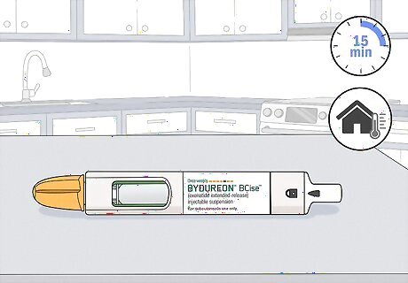 Leave the pen at room temperature for 15 minutes. The medication won't mix properly if it's still cold. Take it out of the refrigerator and leave it at room temperature for 15 minutes so the medication warms up. While the medication should be refrigerated at all times, in a pinch, it will last at room temperature for about 4 weeks.