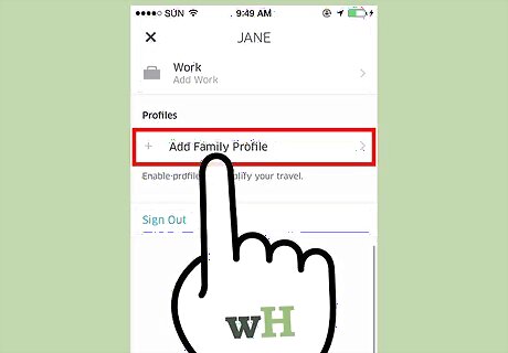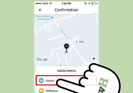 Select the Family Profile from the list. The Family Profile and its shared credit card will now be billed for this trip. You can also change your default profile by tapping ≡ to open the menu, tapping the profile picture and selecting a profile.