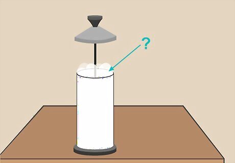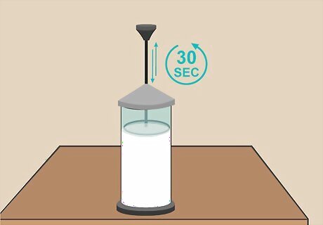 Plunge the handle up and down for 30 seconds. Hold the carafe firmly with your nondominant hand as you pump the plunger into the milk with your dominant hand. It may require more strength to pump the milk as the foam builds, which is normal.