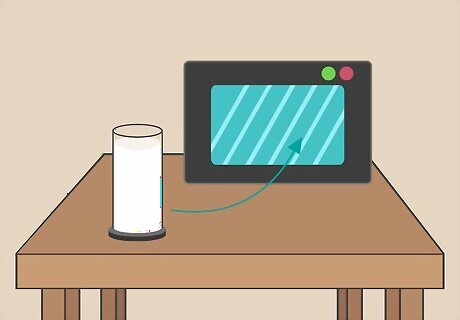 Remove the milk from the microwave. Wear an oven mitt or use a tea towel to remove your hot container from the microwave. Handle the milk as if it is very hot—it probably is!—to prevent accidental burns.